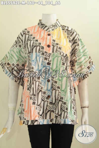 Baju Batik Motif Unik Dengan Kombinasi Warna Keren, Blus Batik Solo Model Kelelawar Bahan Halus Proses Cap Dengan Kerah Desain Shanghai [BLS5592C-M]