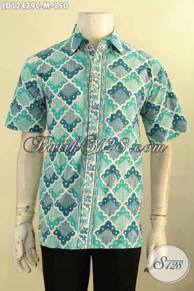 Baju Batik Murah Meriah Buatan Solo Asli, Kemeja Batik Lengan Pendek Trendy Warna Cerah Motif Tren Masa Kini Jenis Cap [LD12429C-M]