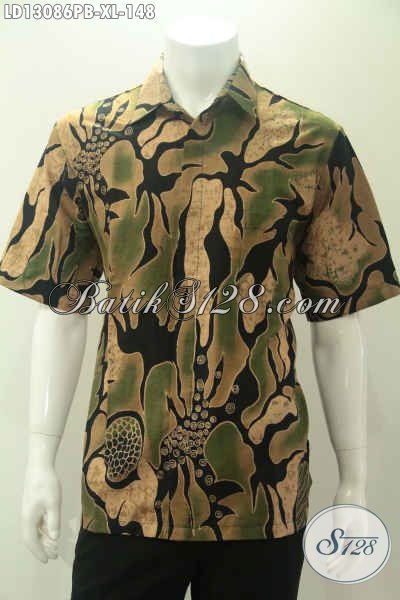Baju Batik Murah Untuk Pria Dengan Kwalitas Istimewa, Hadir Dengan Model Lengan Pendek Motif Keren Khas Solo Proses Print Cabut, Tampil Trendy Dan Modis [LD13086PB-XL]