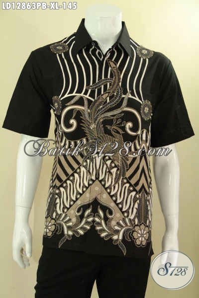 Baju Batik Murah Untuk Pria Kwalitas Istimewa, Kemeja Batik Solo Motif Modern Jenis Printing Cabut Desain Kekinian, Bikin Penampilan Tampan Menawan [LD12863PB-XL]