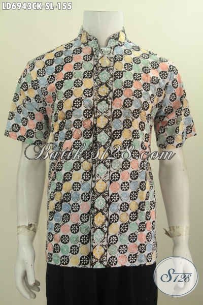 Baju Batik Muslim Terkini, Hem Batik Keren Model Kerah Shanghai Kwalitas Halus Motif Trendy Proses Cap Untuk Tampil Gaul [LD6943CK-S , L]