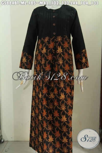 Baju Batik Muslim Untuk Wanita Model Gamis, Berbahan Halus Paduan Polos Motif Elegan Cocok Buat Lebaran [G5884BT-M , L]