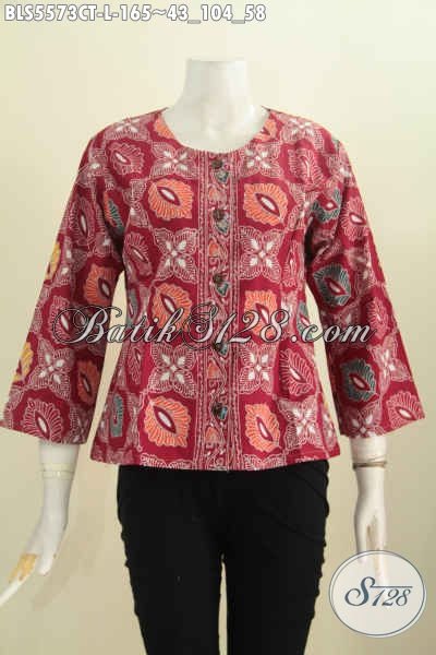 Baju Batik Paling Keren Buat Hangout, Blus Batik Tanpa Kerah Warna Hitam Motif Unik Proses Cap Tulis, Modis Juga Buat Kerja [BLS5573CT-L]