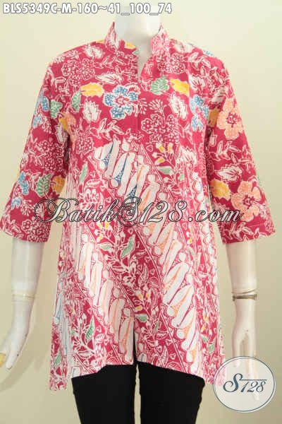 Baju Batik Parang Bunga, Blus Batik Kerah Shanghai Halus Dan Istimewa Bahan Adem Proses Cap Hanya 100 Ribuan [BLS5349C-M]