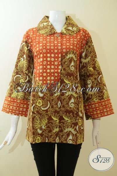Baju Batik Perempuan Dewasa Kombinasi Motif Klasik Dan Modern, Pakaian Batik Dua Warna Trend 2015 Mambuta Wanita Lebih Elegan Dan Berkharisma [BLS3011CT-XL]