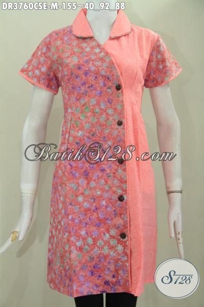 Baju Batik Perempuan Masa Kini Untuk Tampil Modis Dan Anggun, Jual Online Dress Batik Cap Smoke Dual Motif Desain Mewah Harga Terjangkau [DR3760P-M]