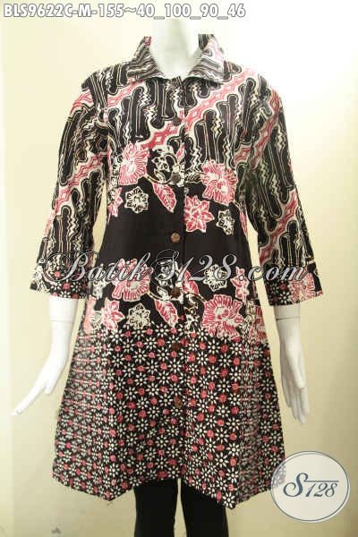 Baju Batik Perempuan Tren Motif Kekinian, Blouse Batik Istimewa Khas Jawa Tengah Motif Modern Model Krah Di Lengkapi Kancing Depan Lengan 7/8, Tampil Lebih Modis [BLS9622C-M]