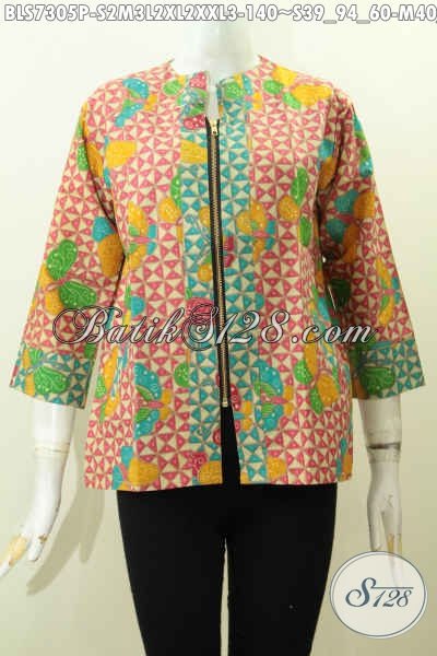 Baju Batik Perempuan Untuk Kerja, Blus Batik 2 Warna Dengan Resleting Depan Motif Bagus Proses Printing, Cocok Juga Buat Jalan-Jalan [BLS7305P-L]