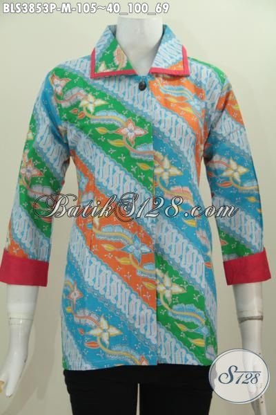Baju Batik Pilisir Keluaran Terbaru Dengan Kombinasi Warna Trendy Serta Motif Elegan Parang Bunga, Batik Blus Istimewa Buat Perempuan Karir Tampil Cantik Maksimal [BLS3853P-M]