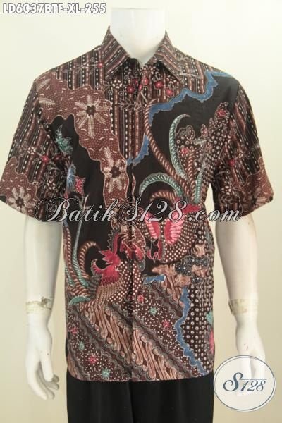 Baju Batik Premium Kombinasi Tulis, Hem Batik Mewah Berbahan Halus Motif Berkelas Model Lengan Pendek, Pakaian Batik Full Furing Buatan Solo Cocok Buat Kondangan [LD6037BTF-XL]
