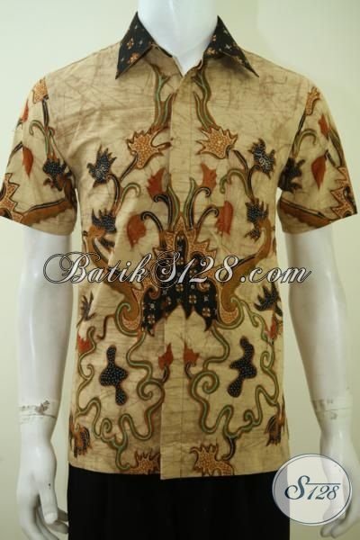 Baju Batik Premium Untuk Pria Sukses, Pakaian Batik Lengan Pendek Coklat Proses Tulis Lebih Mewah Dengan Daleman Full Furing [LD3393TF-S]