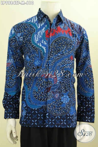 Baju Batik Premium Warna Biru, Kemeja Batik Solo Mewah Halus Lengan Panjang Proses Tulis Daleman Full Furing, Pas Untuk Acara Resmi [LP9984TF-M]