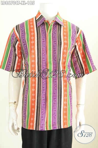 Baju Batik Pria Bagus, Hem Batik Keren Motif Unik Bergaris Kwalitas Istimewa Proses Cap Tulis, Pas Untuk Santai Dan Resmi [LD8670CT-XL]