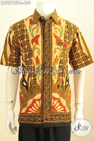 Baju Batik Pria Branded, Kemeja Batik Klasik Proses Tulis Lengan Pendek Full Furing Motif Sinaran, Penampilan Lebih Menawan [LD9274TF-L]