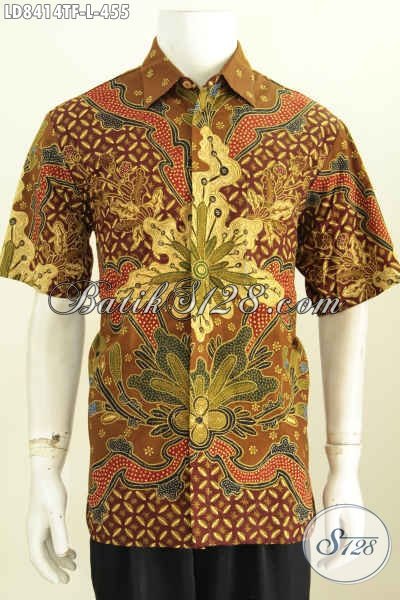 Baju Batik Pria Dewasa Motif Mewah Proses Tulis, Busana Batik Lengan Pendek Elegan Pake Furing Harga 455K [LD8414TF-L]