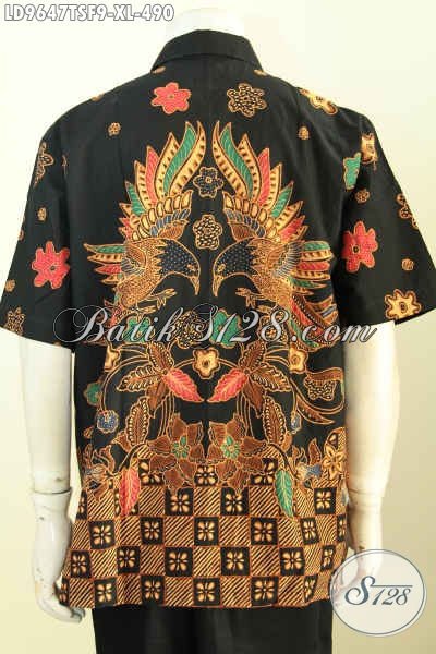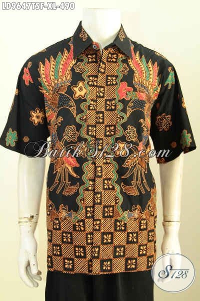 Baju Batik Pria Dewasa, Pakaian Batik Elegan Modis Desain Terbaru Motif Kekinian Proses Tulis Soga, Model Lengan Pendek Full Furing 400 Ribuan [LD9647TSF-XL]