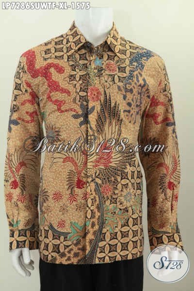 Baju Batik Pria Dewasa Ukuran XL, Hem Batik Premium Bahan Sutra Buatan Solo Asli Kwalitas Istimewa Untuk Cowok Terlihat Gagah Dan Tampan, Model Lengan Panjang Pakai Furing Tulis Asli [LP7286SUWTF-XL]