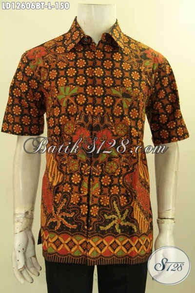 Baju Batik Pria Elegan Model Lengan Pendek, Busana Batik Halus Motif Terkini Proses Kombinasi Tulis Yang Nyaman Di Pakai, Bisa Untuk Acara Santai Maupun Resmi [LD12606BT-L]