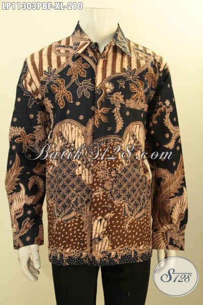 Baju Batik Pria Formal Lengan Panjang Cocok Untuk Rapat, Kemeja Batik Solo Elegan Full Furing Motif Klasik Proses Printing Cabut, Menunjang Penampilan Gagah Dan Tampan [LP11303PBF-XL]