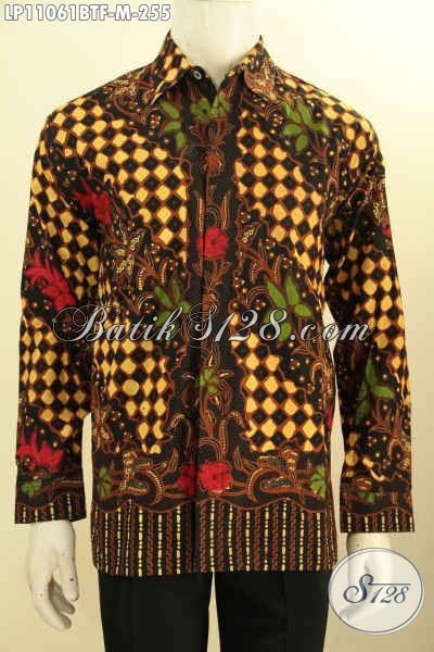 Baju Batik Pria Formal Lengan Panjang Motif Bagus Proses Kombinasi Tulis, Pakaian Batik Berkelas Daleman Full Furing, Tampil Mewah Dengan Harga Terjangkau [LP11061BTF-M]