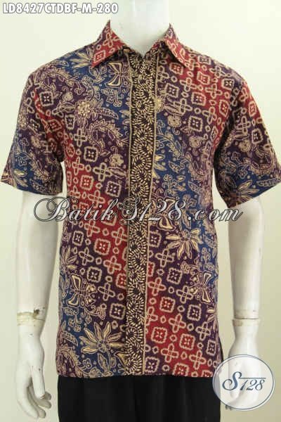 Baju Batik Pria Gaul, Kemeja Batik Cap Tulis Bahan Kain Doby Model Lengan Penedk Daleman Full Furing Terlihat Mewah Dan Berkelas [LD8427CTDBF-M]