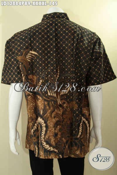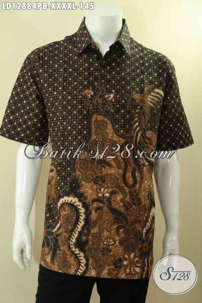 Baju Batik Pria Gemuk Berkwalitas Bagus Harga Terjangkau, Kemeja Batik Solo Asli Model Lengan Pendek Motif Tren Masa Kini Proses Printing Cabut, Bisa Untuk Acara Resmi Maupun Santai [LD12884PB-XXXXL]