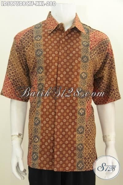 Baju Batik Pria Gemuk, Hem Batik Lengan Pendek Full Furing Motif Elegan Proses Cap Tulis, Pakaian Batik Solo Istimewa Bikin Penampilan Lebih Berwibawa [LD5875DBCTF-XXL]