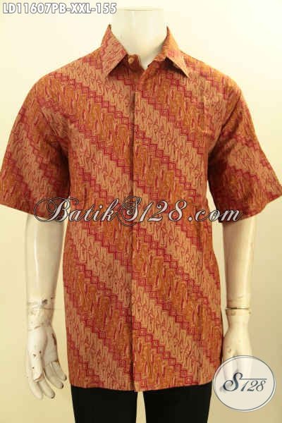 Baju Batik Pria Gemuk Lengan Pendek, Hem Batik Halus Motif Parang Klasik Warna Elegan Proses Printing Cabut, Busana Batik Nan Berkelas Dengan Harga Terjangkau, Bisa Untuk Kondangan Dan Acara Resmi Lainnya [LD11607PB-XXL]