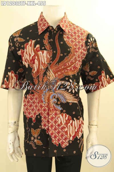 Baju Batik Pria Gemuk Lengan Pendek Nan Mewah Daleman Full Furing, Busana Batik Solo Jenis Tulis Yang Membuat Penampilan Tampan Menawan [LD12032TF-XXL]