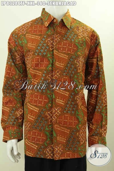 Baju Batik Pria Gemuk Motif Sekarjagad, Hem Batik Kwalitas Bagus Full Furing Lengan Panjang Proses Cap Tulis Harga 300 Ribuan [LP8328CTF-XXL]