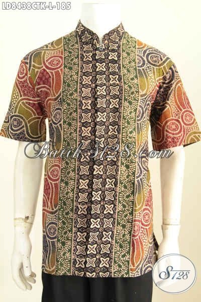 Baju Batik Pria Halus Model Kerah Shanghai, Kemeja Koko Lengan Pendek Motif Bagus Proses Cap Tulis Hanya 180 Ribuan [LD8438CTK-L]