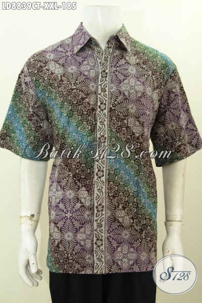 Baju Batik Pria Jumbo Lengan Pendek Halus Size XXL, Kemeja Batik Cap Tulis Dari Solo, Spesial Buat Lelaki Gemuk Tampil Beda [LD8839CT-XXL]