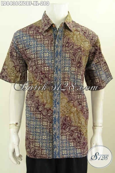Baju Batik Pria Kantor, Pakaian Batik Lengan Pendek Halus Full Furing Motif Elegan Proses Cap Tulis Bahan Kain Doby Hanya 280K [LD8436CTDBF-XL]