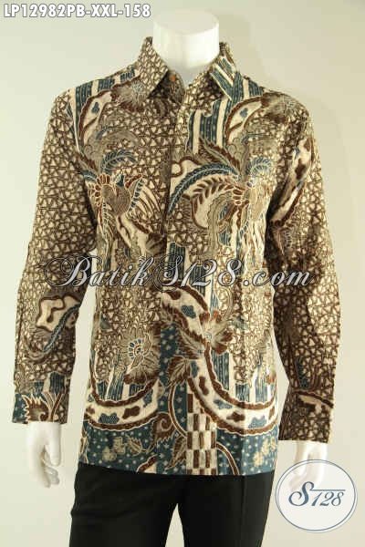 Baju Batik Pria Lengan Panjang Halus Motif Bagus Kwalitas Istimewa, Busana Batik Solo Asli Spesial Bagi Yang Berbadan Gemuk [LP12982PB-XXL]