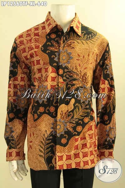 Baju Batik Pria Lengan Panjang Tulis Asli, Kemeja Batik Mewah Pakai Furing Desain Terbaru Motif Kekinian Hanya 600 Ribuan [LP12560TF-XL]