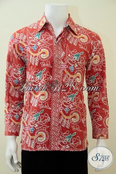 Baju Batik Pria Lengan Panjang Warna Orange Motif Keren Trend Masa Kini, Hem Batik Kwalitas Bagus Dengan Harga Terjangkau [LP2877CT-S]