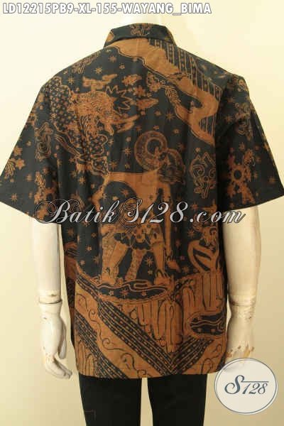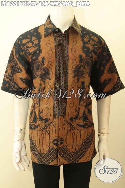 Baju Batik Pria Lengan Pendek Elegan Motif Wayang Bima, Kemeja Batik Printing Cabut Bahan Halus Nyaman Di Pakai, Tampil Gagah Dan Menawan [LD12215PB-XL]
