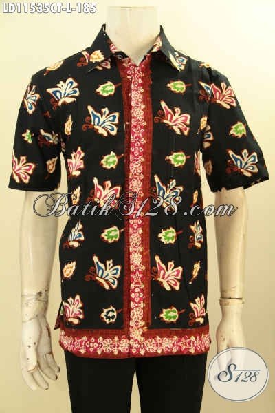 Baju Batik Pria Lengan Pendek Trendy, Busana Batik Solo Halus Desain Keren Bahan Adem Proses Cap Tulis, Tampil Gaya Dan Tampan [LD11535CT-L]