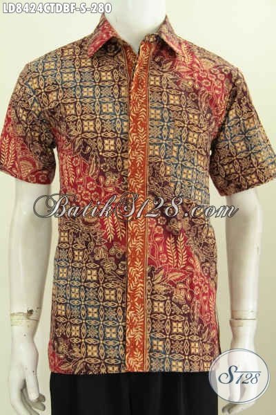 Baju Batik Pria Model Terbaru, Pakaian Batik Bahan Dolby Full Furing Lengan Pendek Motif Bagus Proses Cap Tulis [LD8424CTDBF-S]