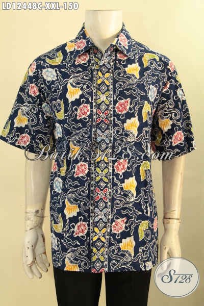 Baju Batik Pria Modern Big Size, Kemeja Lengan Pendek Keren Motif Kekinian Dengan Paduan Warna Modern Exclusive Untuk Yang Berbadan Gemuk [LD12448C-XXL]