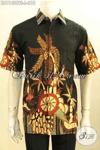 Baju Batik Pria Modern Nan Modis, Busana Kemeja Batik Model Lengan Pendek Motif Tren Masa Kini Proses Tulis Soga Kwalitas Istimewa, Cocok Buat Ngantor Harga Terjangkau [LD11429TS-L]