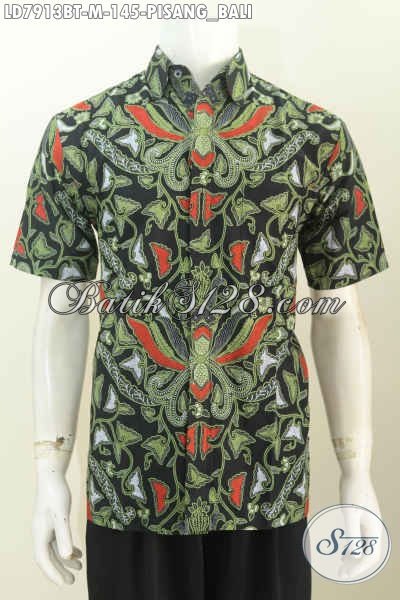 Baju Batik Pria Motif Klasik Pisang Bali, Kemeja Batik Halus Lengan Pendek Size M Spesial Buat Lelaki Muda Yang Ingin Tampil Beda [LD7913BT-M]