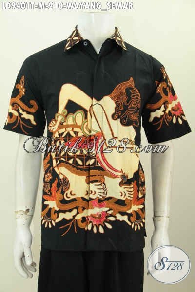 Baju Batik Pria Muda, Kemeja Batik Solo Halus Proses Tulis Motif Wayang Semar Lengan Pendek Dasar Hital Tampil Terlihat Elegan [LD9401T-M]