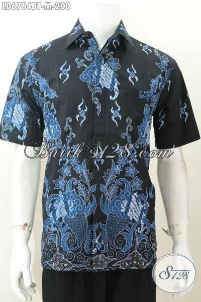 Baju Batik Pria Muda Model Lengan Pendek, Hem Batik Halus Modis Kwalitas Istimewa Dasar Hitam Proses Kombinasi Tulis Harga 200 Ribu [LD6764BT-M]