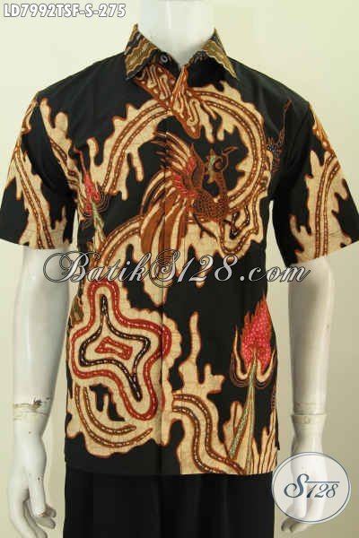 Baju Batik Pria Muda Size S, Kemeja Batik Lengan Pendek Pake Furing Motif Unik Proses Tulis Soga Tampil Lebih Berkelas [LD7992TSF-S]