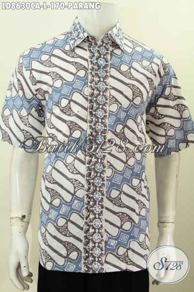 Baju Batik Pria Tebaru Online, Hem Batik Elegan Motif Parang Lengan Pendek Buatan Solo Proses Cap Warna Alam, Cocok Buat Seragam Kerja Tampil Menawan [LD8630CA-L]