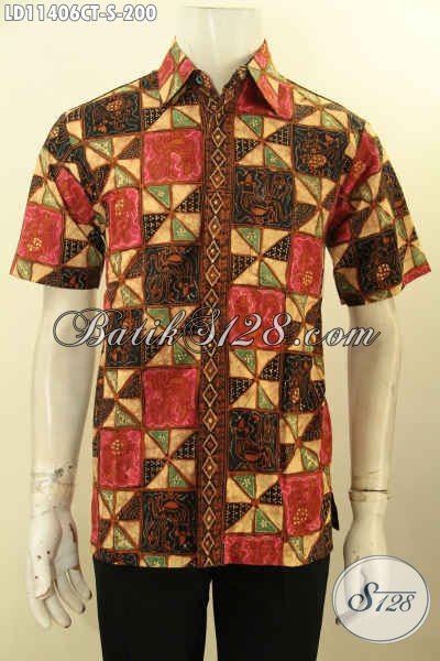 Baju Batik Pria Terbaru Model Lengan Pendek Nan Modis, Pakaian Batik Elegan Untuk Kerja Atau Kondangan Motif Terkini Proses Cap Tulis Hanya 260K [LD11406CT-S]