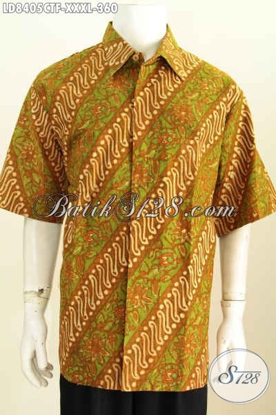 Baju Batik Pria Ukuran Big Size, Hem Batik Solo Halus Motif Klasik Bahan Adem Model Lengan Pendek Full Furing Spesial Untuk Pria Gemuk Sekali [LD8405CTF-XXXL]