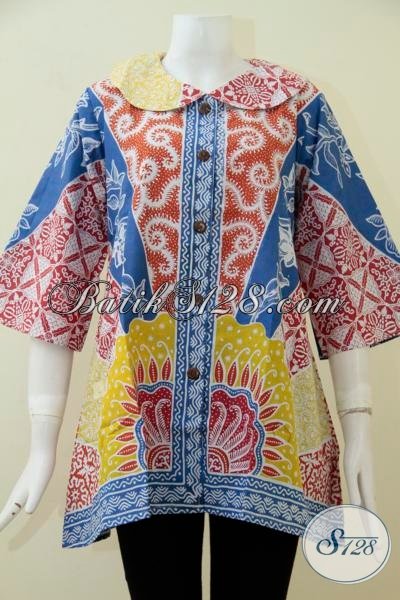 Baju Batik Print Kwalitas Bagus Harga Terjangkau, Busana Blus Batik Model Terkini Dengan Motif Dan Warna Menarik Wanita Muda Tampil Keren Dan Modis [BLS1733P-L]