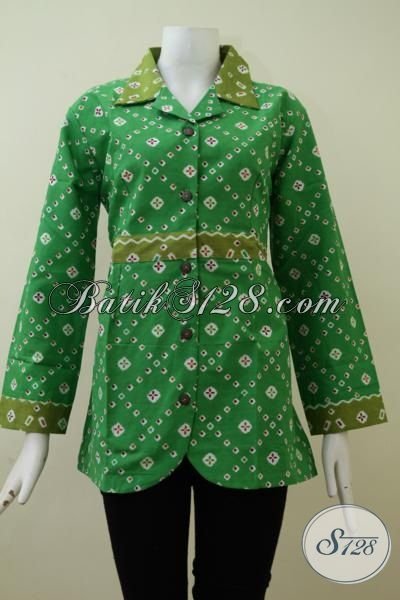 Baju Batik Print Warna Hijau Cerah, Busana Blus Batik Lengan Panjang Model Terbaru Yang Mewah Untuk Tampil Elegan Berkelas [BLS2150P-M]